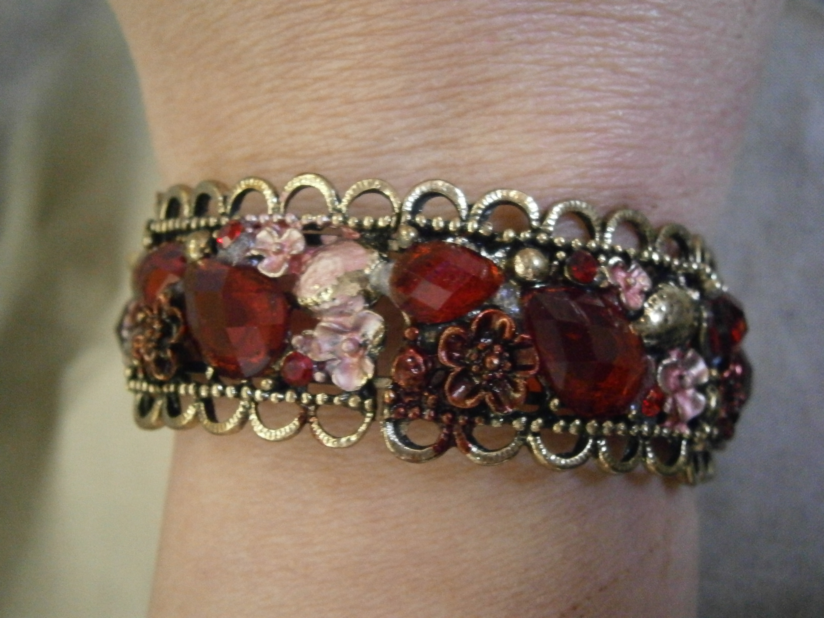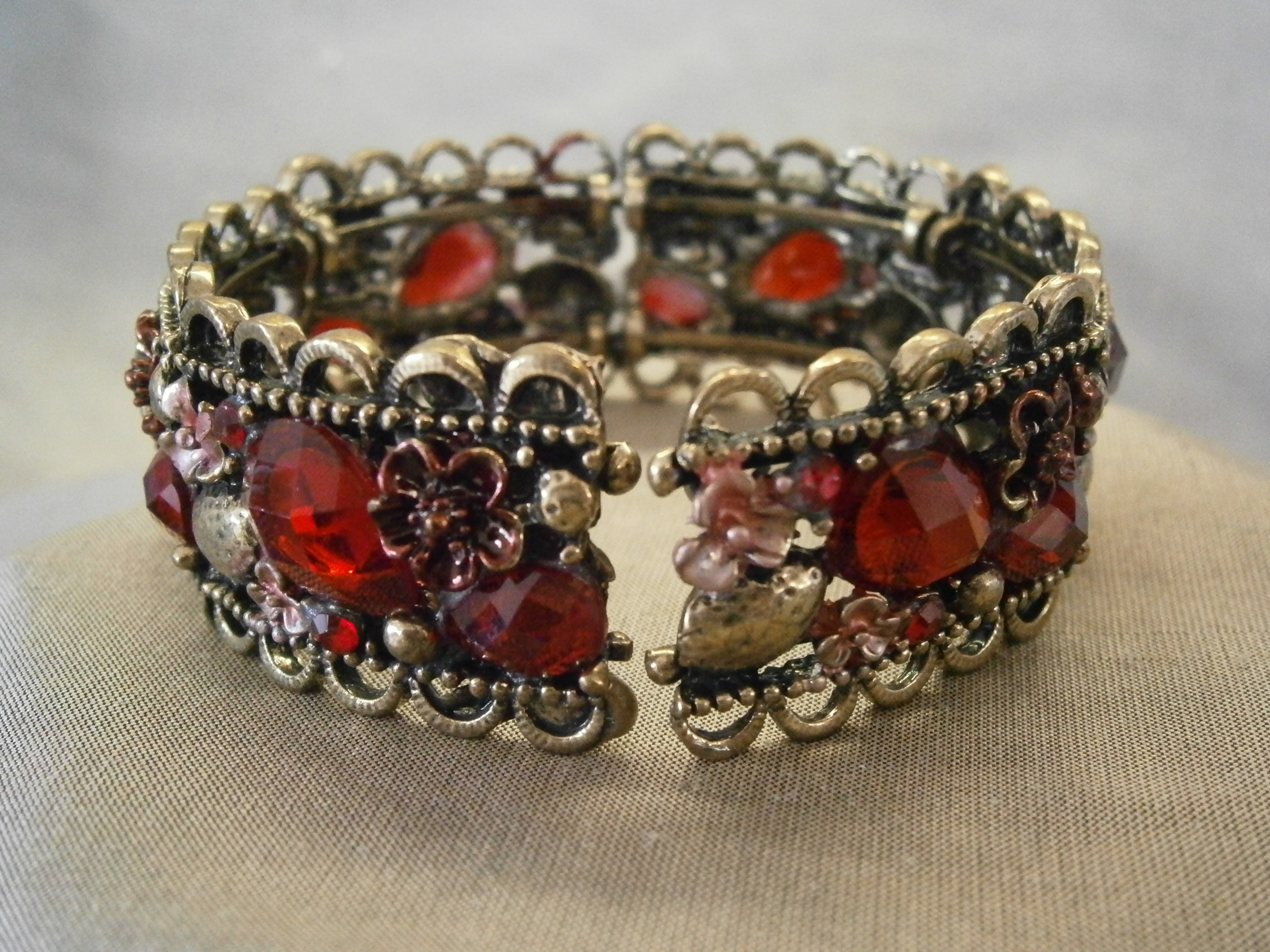 Ruby Red Crystal Cuff Style Bracelet in Antique Bronze FREE SHIPPING!